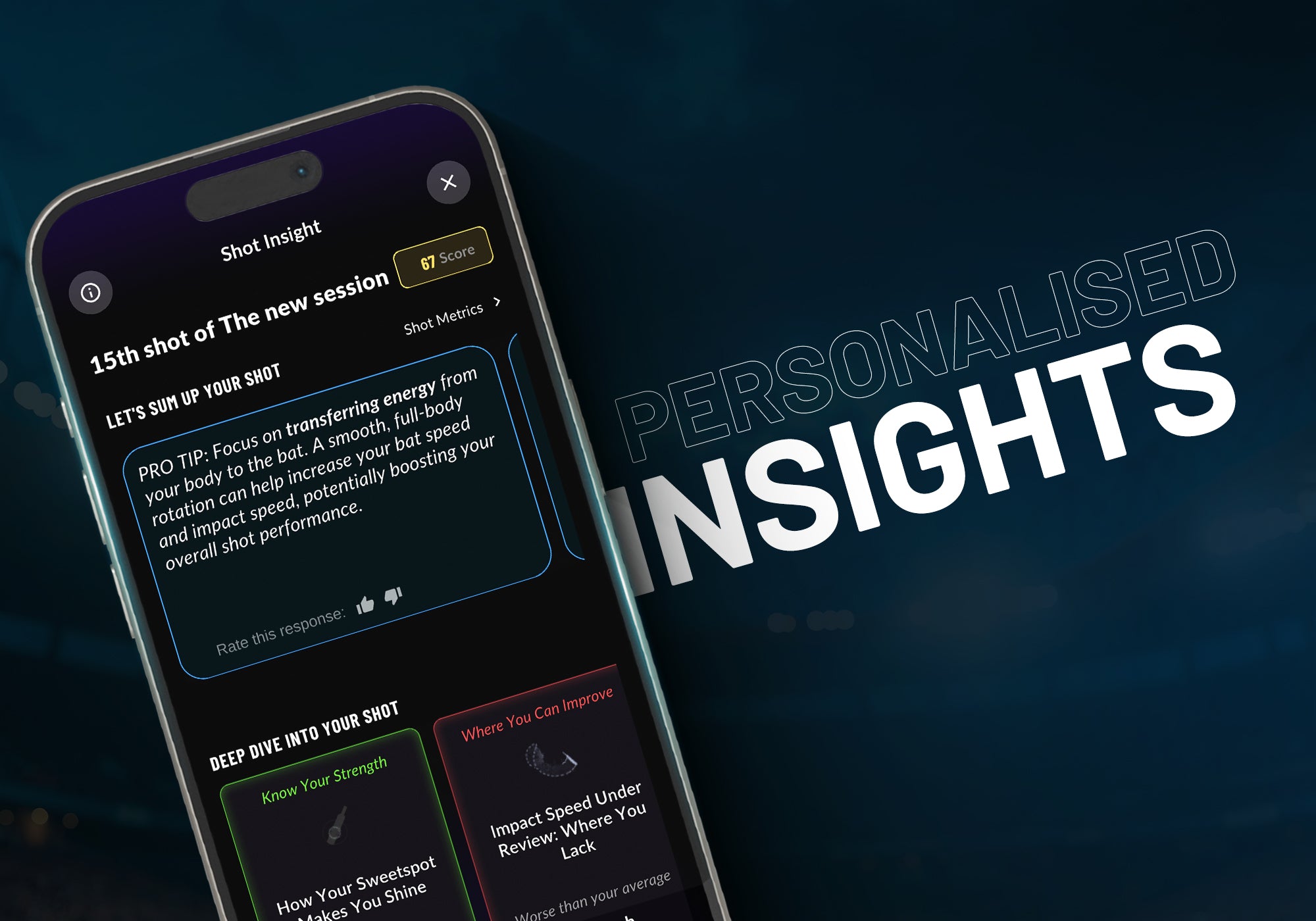 Unlock real-time performance data with the Str8bat smart sticker. Designed to capture every nuance of your shot, it helps players and coaches elevate training with precision, consistency, and insight.